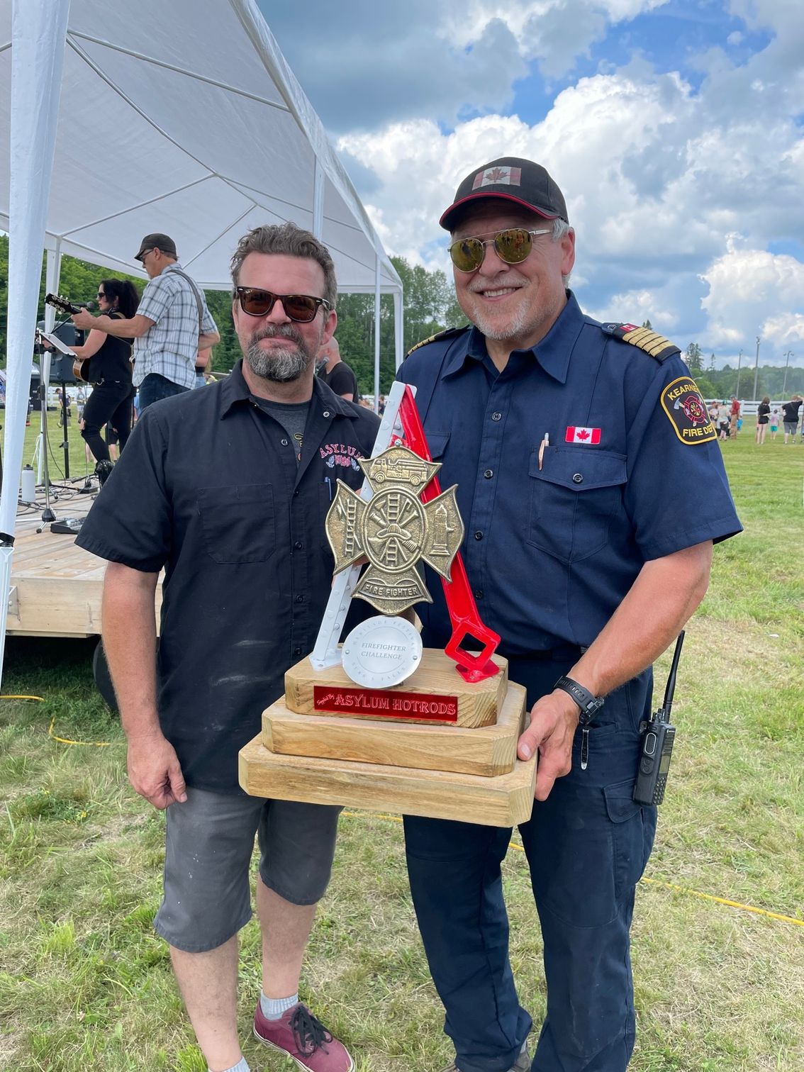 Asylum Hotrods created a custom trophy for us which is kept at the Watt Century Farm House Heritage Centre and brought out annually to showcase the winner of the challenge. The firefighters also have their own trophy which is displayed in the winner's fire station for the year. Who will earn bragging rights this year??