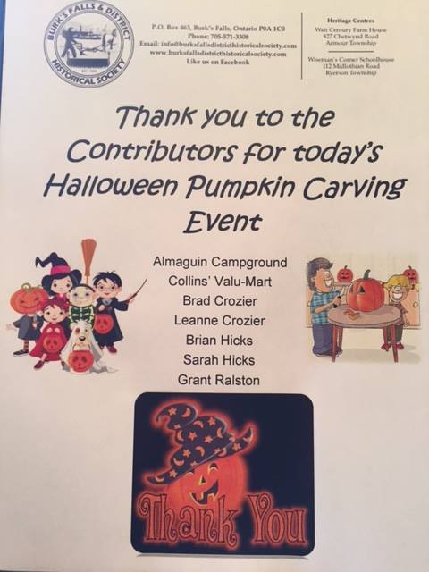What a successful Halloween Party we had on October 15th! Over 50 children attended the event! Thank you to our Members, our professional pumpkin carvers, business contributors, volunteers and community for supporting the Historical Society. We all had a wonderful time. Happy Halloween!